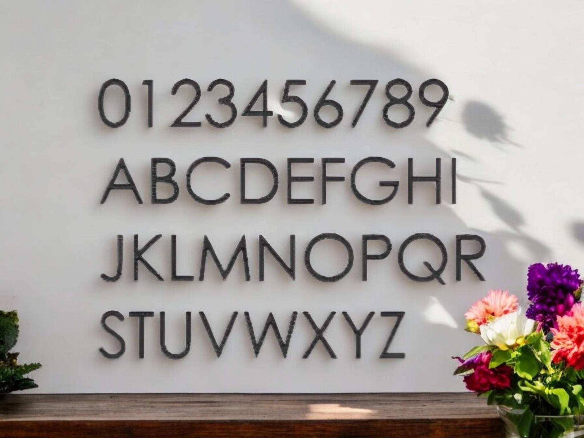 These weatherproof numbers and letters are laser cut from 1/8" thick black acrylic.