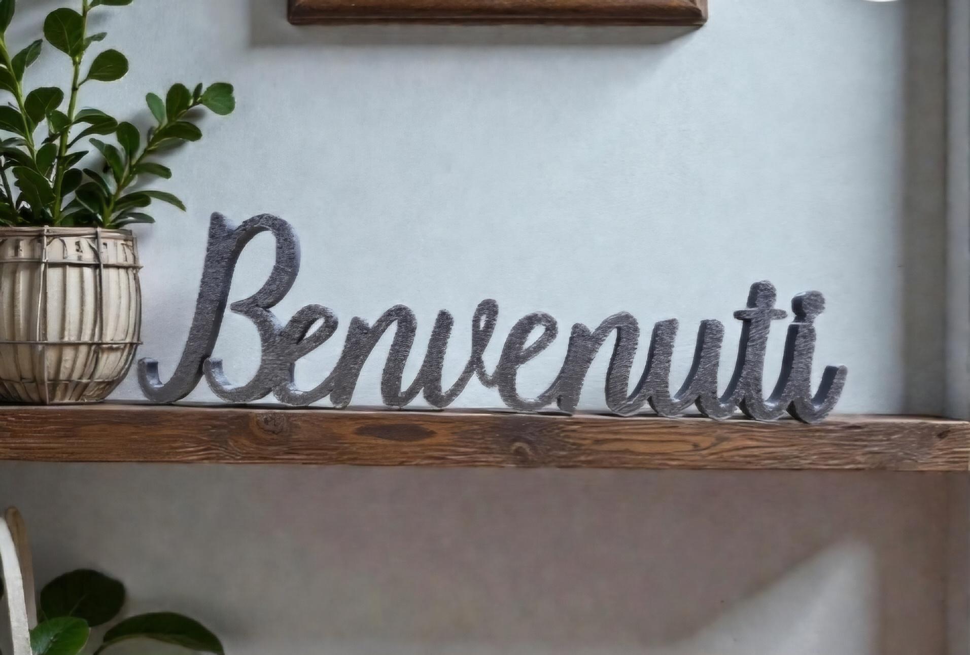 Freestanding Benvenuti Sign | Thick Benvenuti Sign | 3D Sign | Italian Home Decor