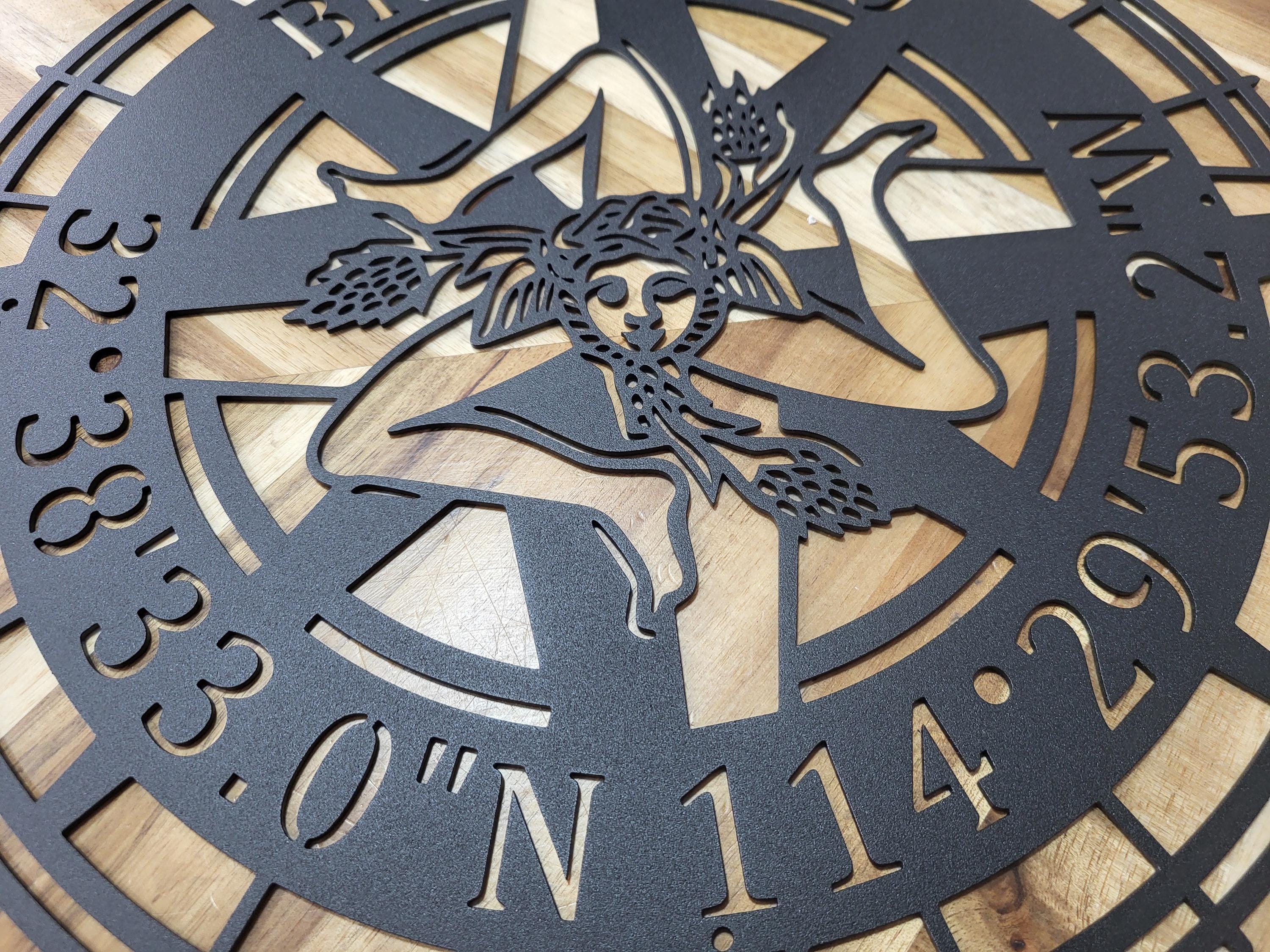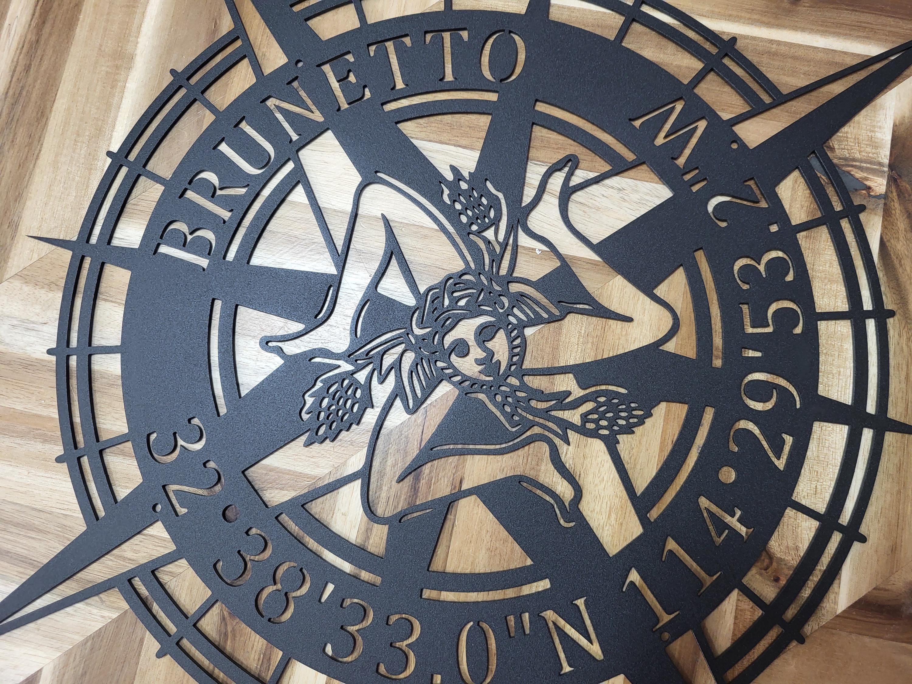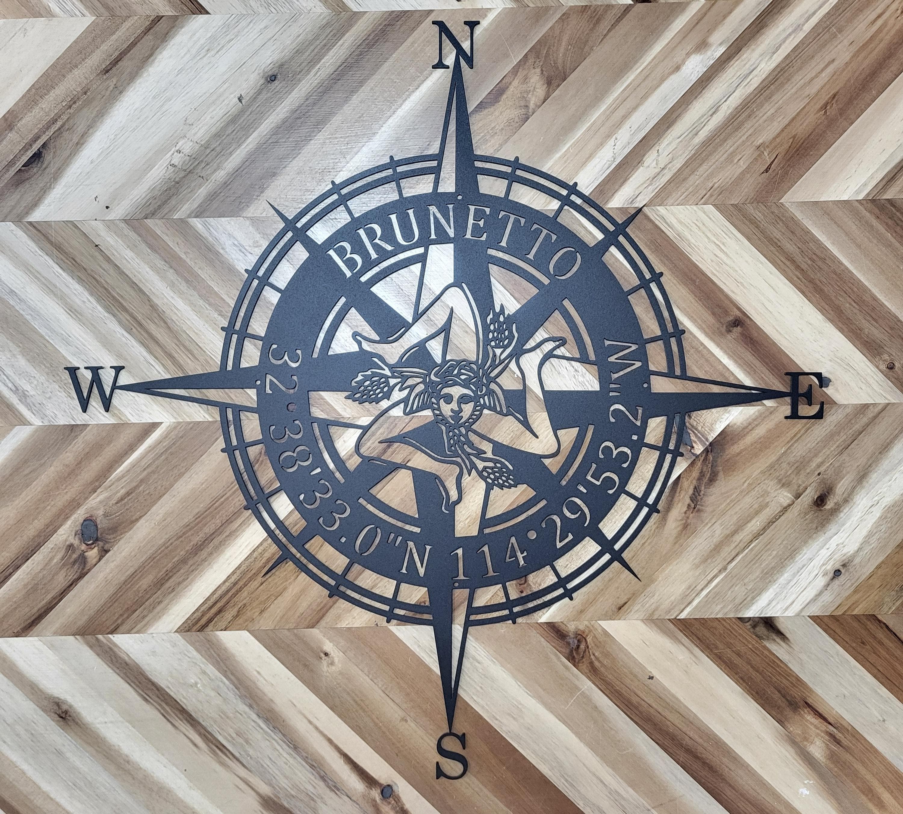 Custom GPS Sicilian Trinacria Compass Metal Wall Art Personalized Coordinates Name Sign Home Décor Nautical Man Cave Decoration