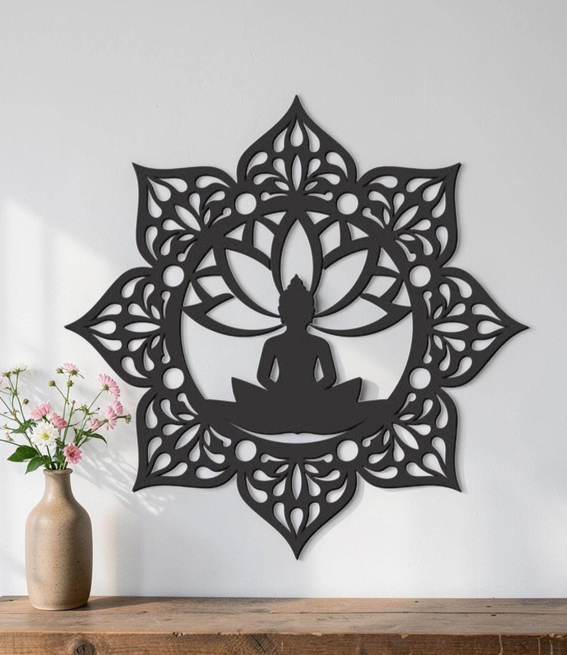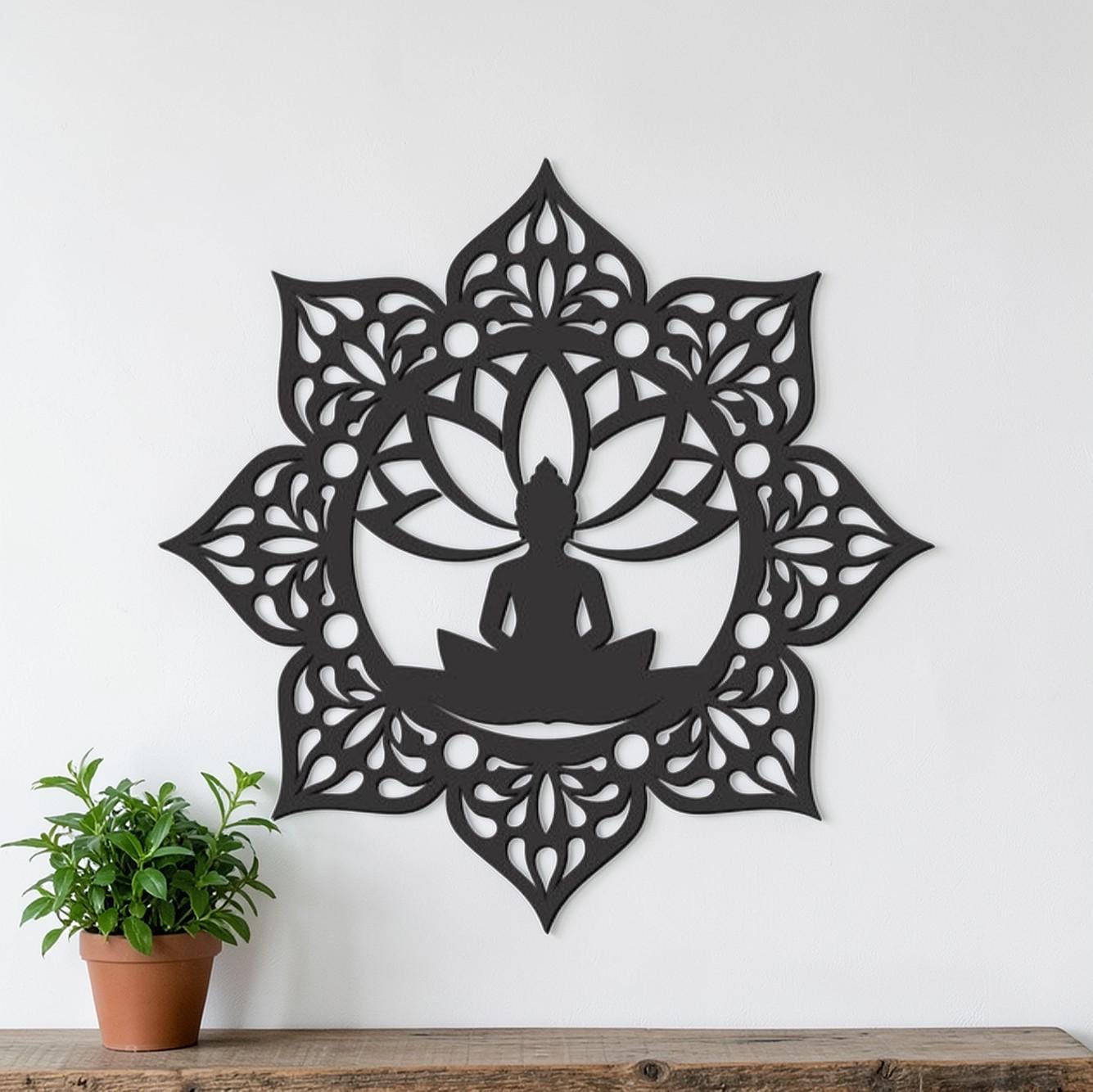 Buddah Lotus Sign | Mandala Flower Sign | Lotus Mandala Sign | Serenity Metal Wall Art | Modern Aestetic Metal Flower
