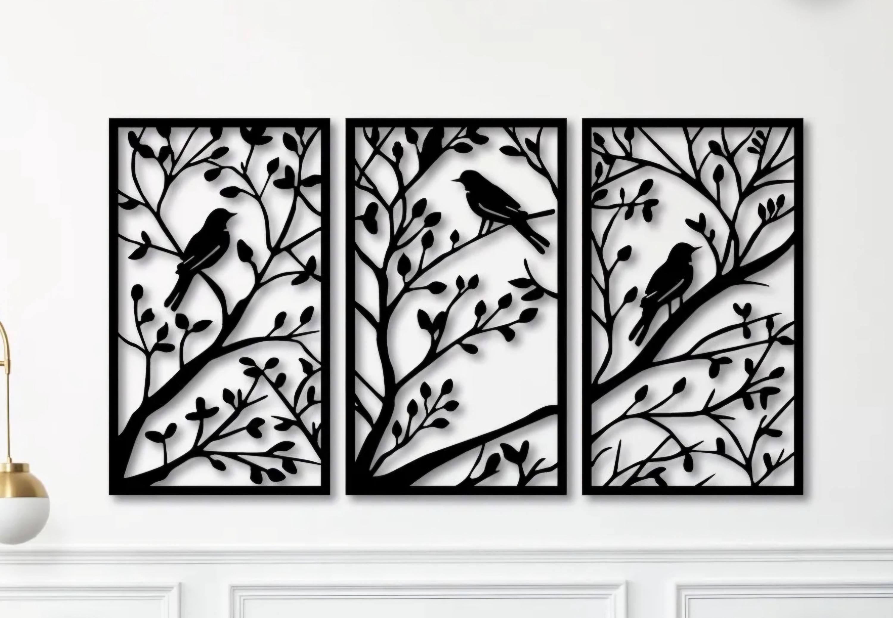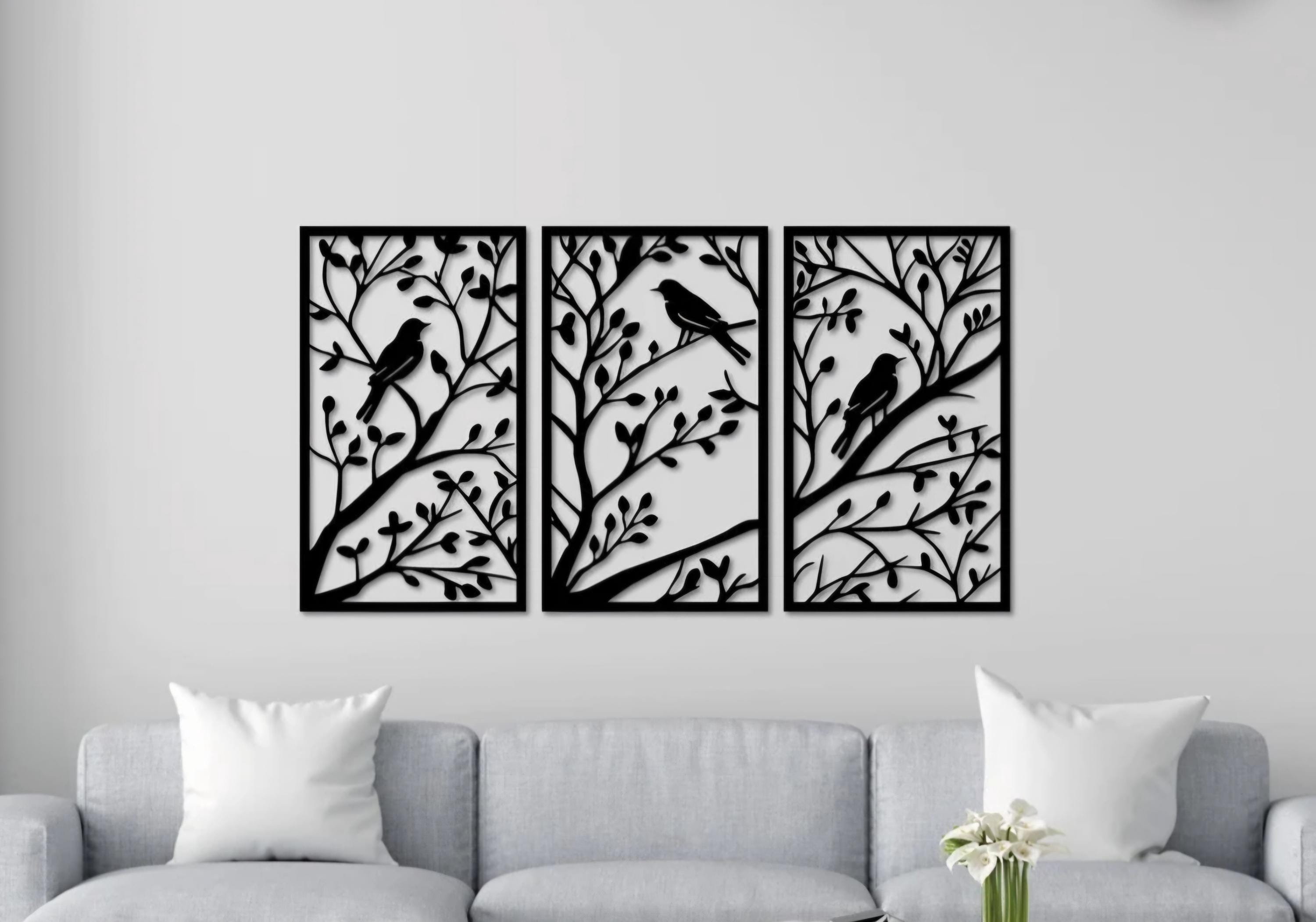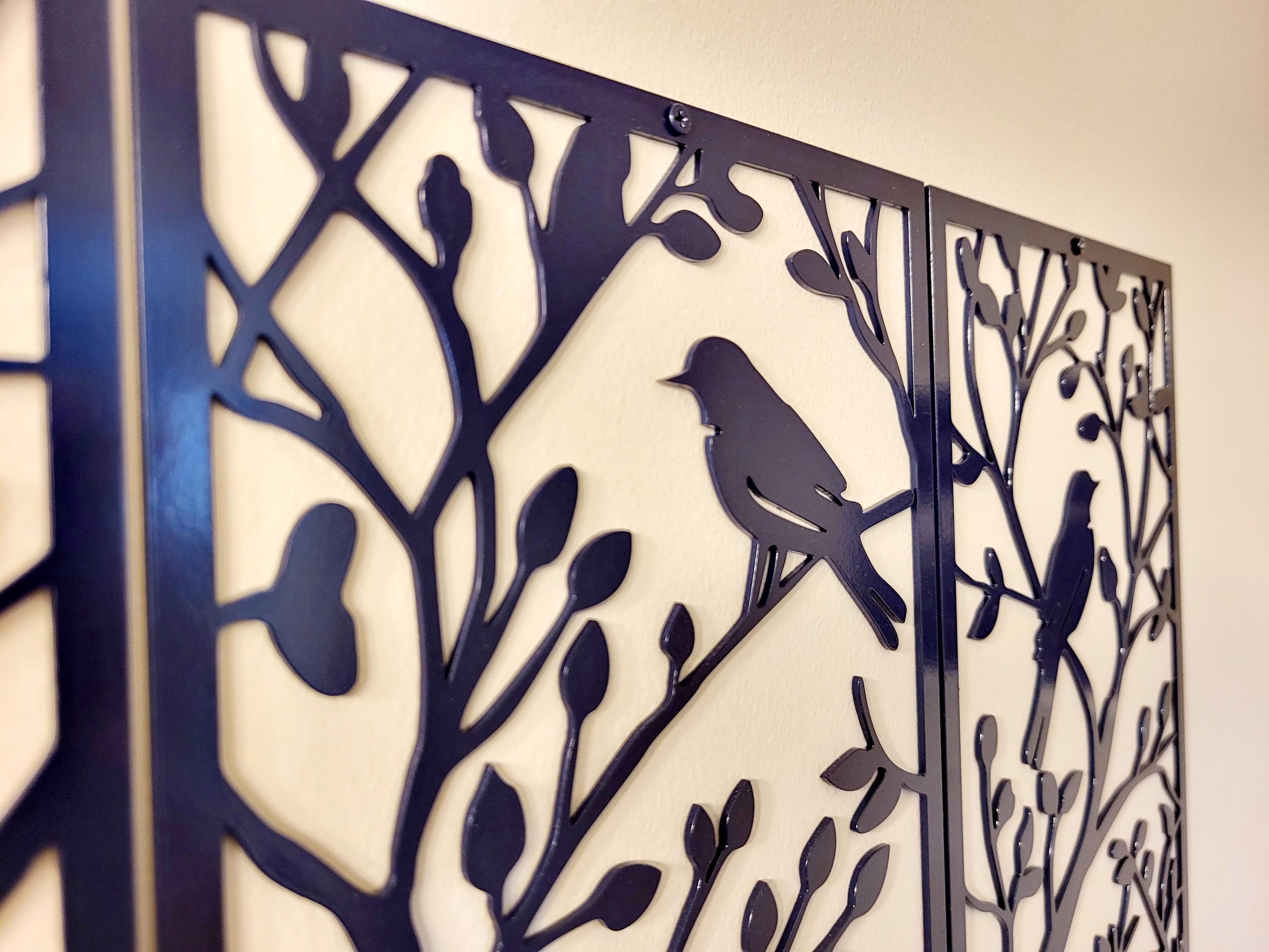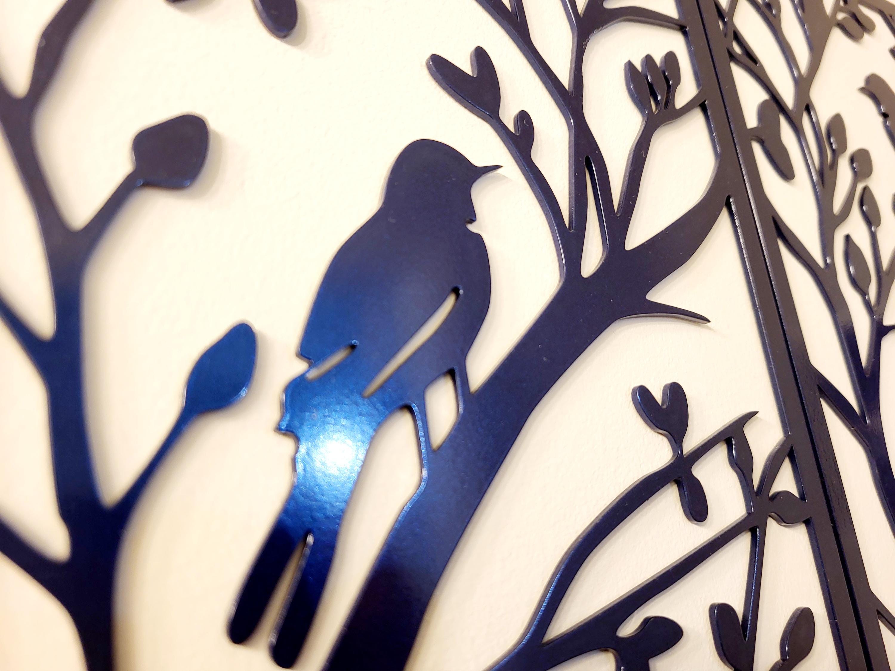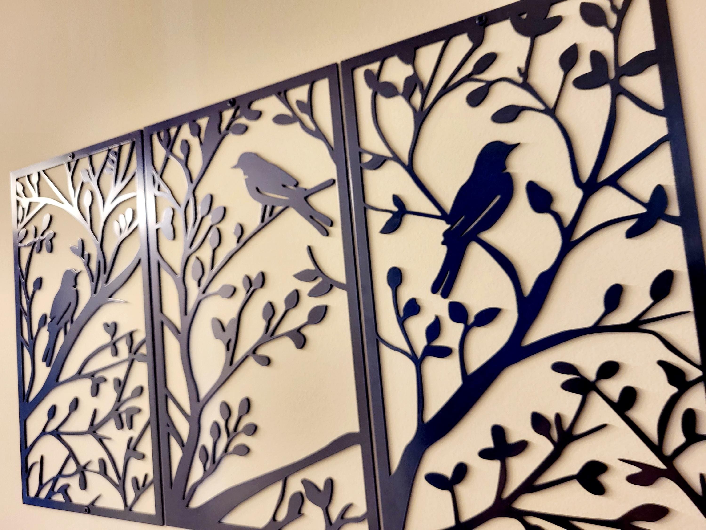3 Piece Birds on a Tree Branch Sign | Metal Bird Wall Art | Bird Scene