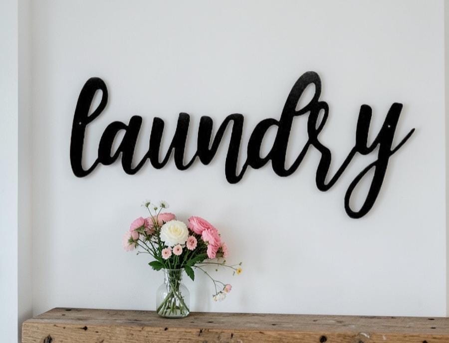 Laundry Cursive Word Sign | Farmhouse Style Laundry | Home Decor | Metal Wall Art | Words | Gift | Housewarming | Laundry Room Sign