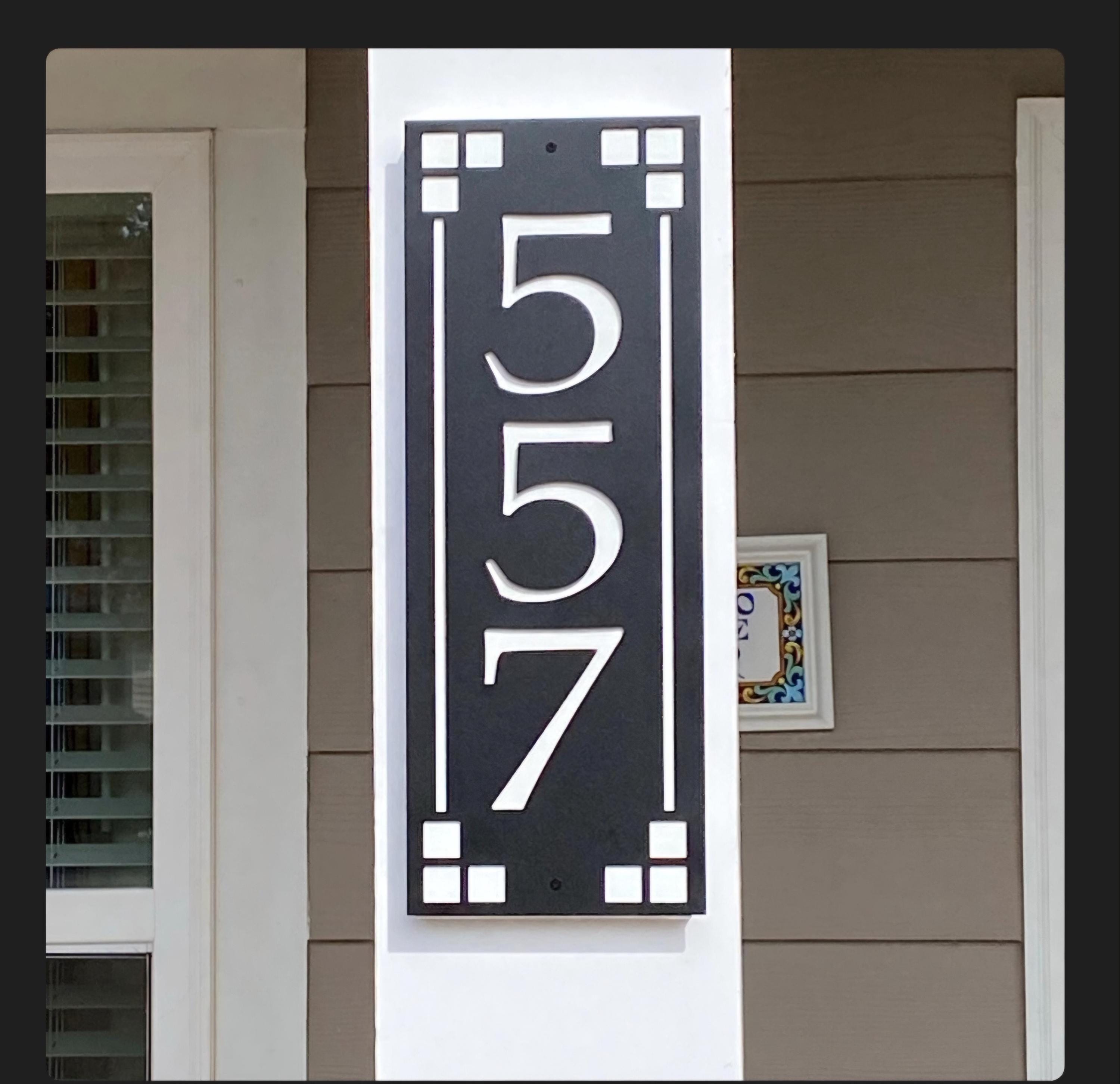 Arts and Craft Address Sign | Craftsman Address Plaque | Mission Style Address Sign | Art and Craft House Numbers | Vertical Address Sign